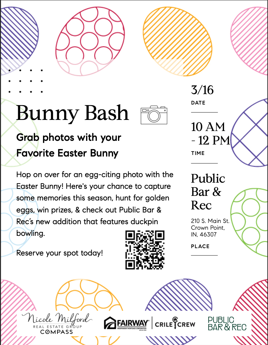 Compass NW Indiana is thrilled to offer an amazing event for your families on March 16th. In conjunction with The Crile Crew at Fairway Independent Mortgage and Public Bar and Rec, Iād like to invite you and your families to come meet the Easter Bunny, play some games and win some prizes.